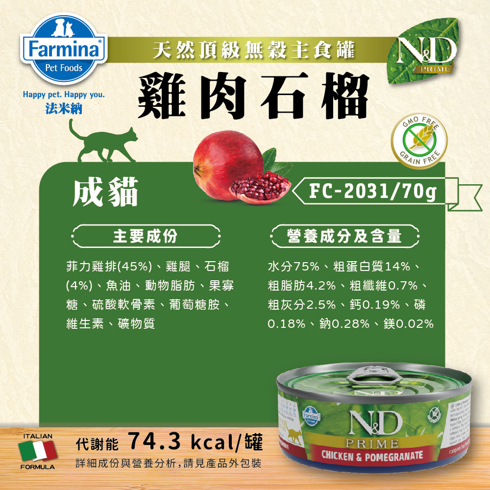 Farmina 成貓 雞肉石榴 天然頂級無穀貓用主食罐 70g