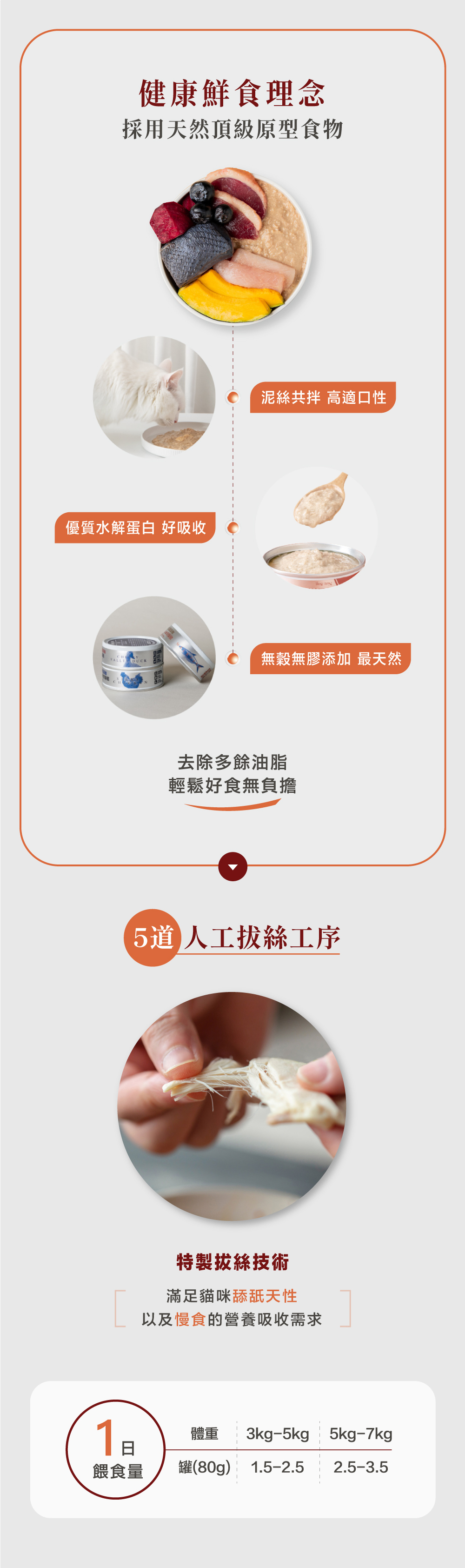 ▲ 每罐 80g / 絲泥各半質地,全齡貓適用